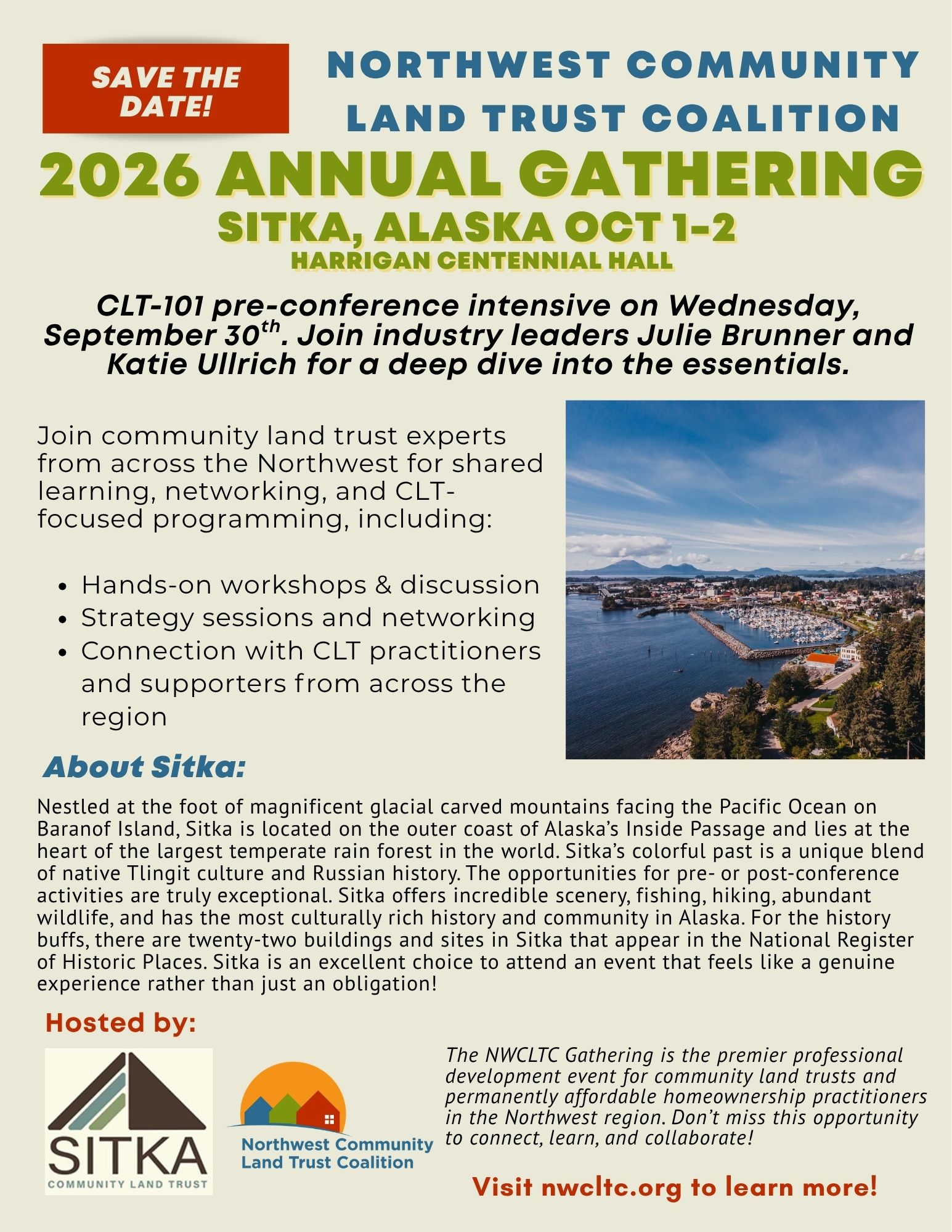 Northwest Community Land Trust Coalition 2026 Annual Gathering will be in Sitka, Oct 1st-2nd
